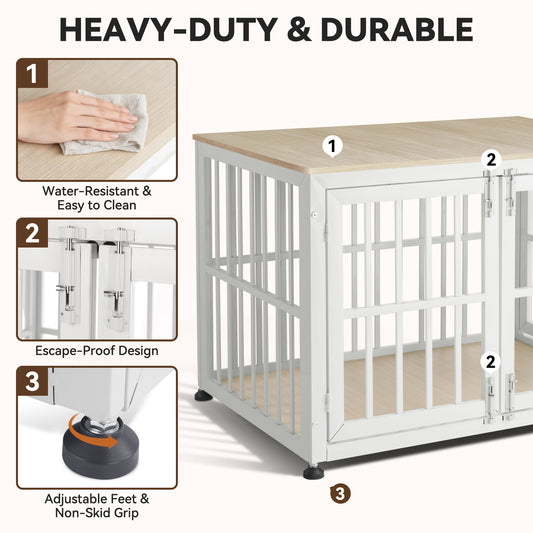 Oranland 42 Inch Heavy Duty Dog Crate Furniture,Dog Kennel Furniture Indoor for Large and Medium Dogs,Decorative Pet House End Table, 0.8 Inch Steel Tubes Wooden Cage/Max Load Capacity 300lbs/White